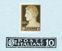 c. 10 bruno 2250 4250 c. 60 verde mirto 500 1000 l. 1 violetto 500 500 Valori 3 L'emissione completa 3200 5500