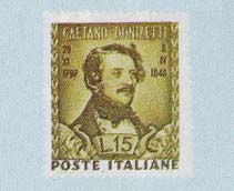 Centenario della morte di Gaetano Donizetti. Stampa in rotocalco in fogli di 60 (x 4). Filigr.