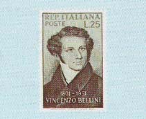 150° anniversario della nascita di Vincenzo Bellini. Stampa in rotocalco in fogli di 50 (x 4). Filigr.