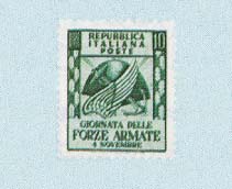 Giornata delle Forze Armate. Stampa in rotocalco in fogli di 100 (x 4)) il 10 l., in fogli di 60 (x 4) il 25 e il 60 l. Filigr.