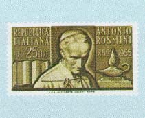 Centenario della morte di Antonio Rosmini. Stampa in rotocalco in fogli di 50 (x 4). Filigr.