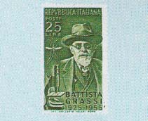 30° anniversario della morte di Battista Grassi. Stampa in rotocalco in fogli di 50 (x 4). Filigr.