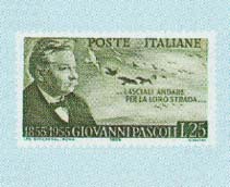 Centenario della nascita di Giovanni Pascoli. Stampa in rotocalco in fogli di 50 (x 4). Filigr.