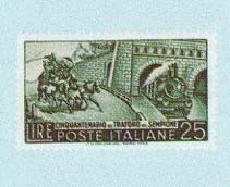 Cinquantenario del traforo del Sempione. Stampa in rotocalco in fogli di 50 (x 4). Filigr.