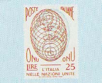 Ammissione dell'Italia all'O.N.U.. Stampa fotolitografica su carta pattinata rosa in superficie per il 25 l. e verde per il 60 l.. In fogli di 40